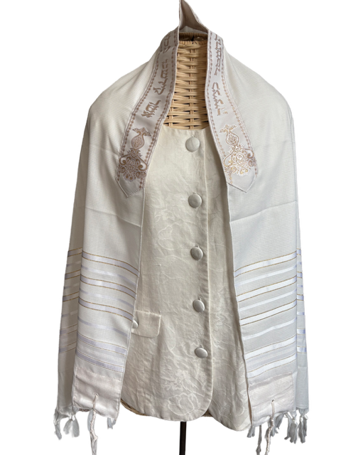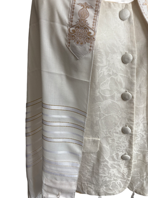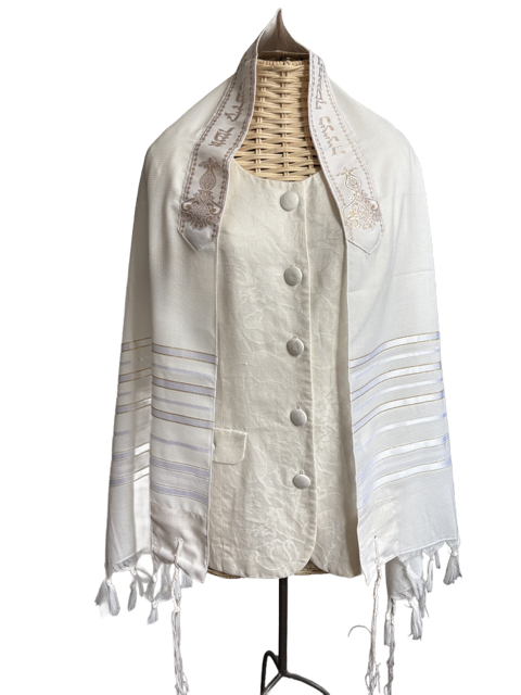This conservative and traditional tallit in white and gold is perfect as a quality prayershawl at an affordable price. The Hayden tallit will match everything – and the colors of white and gold are rich. In addition, the tallit is very comfortable to wear. Matching tallit bag included. Made in Israel.